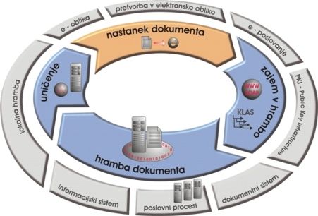 Tudi na tem področju vam lahko pomagamo, saj imamo dolgoletne izkušnje na področju upravljanja z dokumenti. Svetujemo vam postopke za obdelavo dokumentov na vhodu (skeniranje), spremljamo življenjski cikel in sledenje (workflow) dokumentov, svetujemo vam kako urediti arhivsko gradivo in vam pomagamo pri pripravi dokumentacije na področju upravljanja za dokumenti in uvajanja elektronskih arhivov (ZVDAGA).